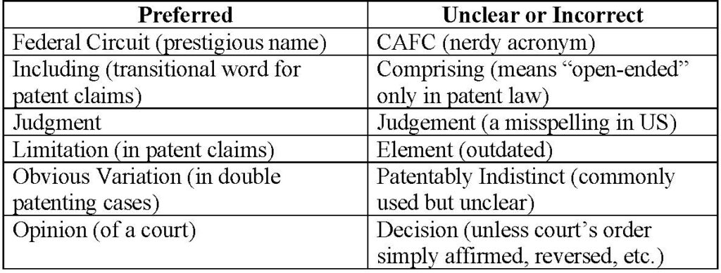 The Right Tone — Find the best level of formality to fit the situation. Most legal and IP writing is too formal. Use simple words and sentences. Ordinarily, don’t imitate the tone of judicial opinions.